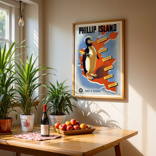 Today, years later, travel posters serve as excellent retro wall art for both private homes and public work environments. If you're looking to add a touch of vibrancy and personality to your walls, look no further than our online poster collections. As an Australian print company, we have been in the business for over a quarter-century, specializing in art reproductions, photography, and poster printing.